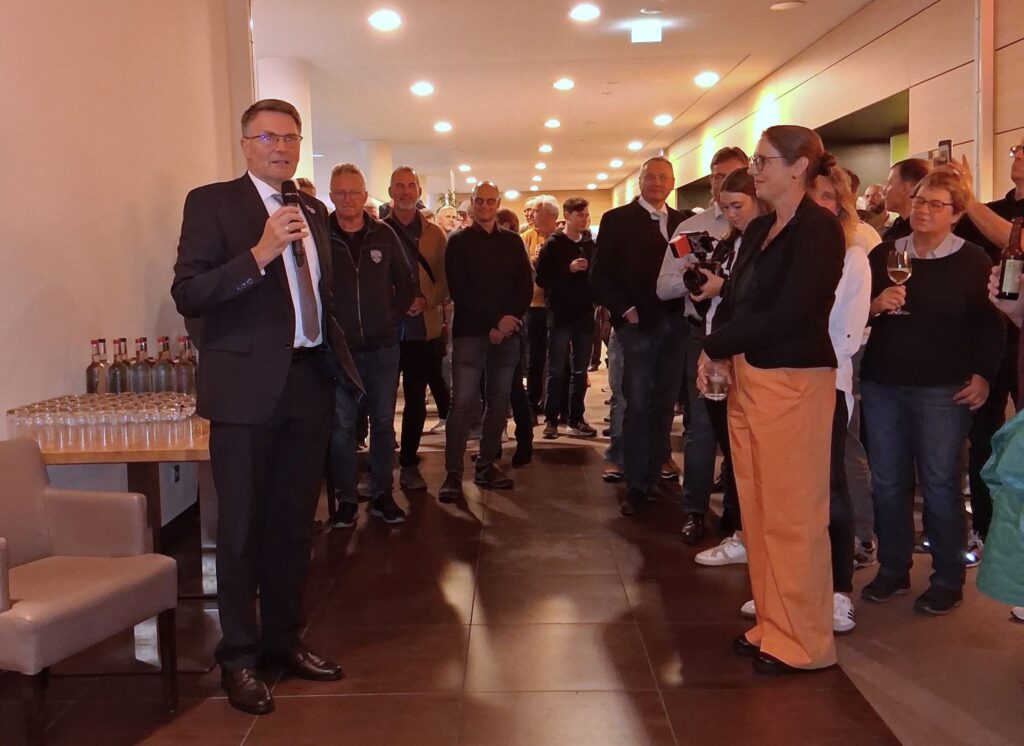 Am Abend lud der Verband zum gemeinsamen Essen ein. Man kam locker mit anderen Imkern ins Gespräch, es wurde viel gelacht und mit dem eigens gebrauten Honigbier angestoßen.